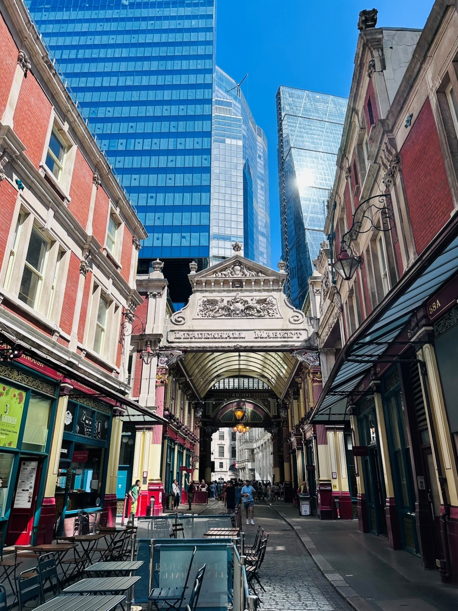 첫째, 역사적 층위의 가시성입니다. 레덴홀 마켓 인근의 골목은 중세 상업 지구의 흔적을 유지하고 있습니다. 좁은 통로와 아치형 구조는 과거의 도시 기능을 암시합니다. 이러한 공간은 단순한 통행로가 아니라 시간의 축적을 보여주는 장치입니다. 건물 외관과 도로 폭, 간판 형태는 시대별 변화를 반영합니다. 골목은 도시의 역사적 연속성을 체감하게 합니다.